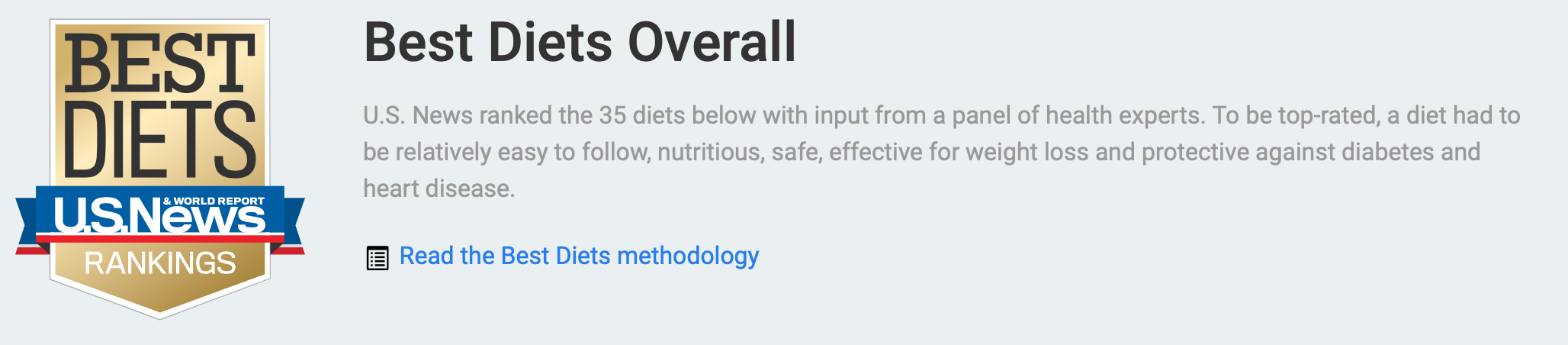 For the last 10 years, a national panel of experts in diet, nutrition, obesity, food psychology, diabetes and heart disease have reviewed and rated different diet patterns based on seven categories; how easy it is to follow, its ability to produce short-term and long-term weight loss, its nutritional completeness, its safety and its potential for preventing and managing diabetes and heart disease. Nine categories were compiled, which included best diets overall, best commercial diets, best weight loss diets, best diabetes diets, best heart-healthy diets, best diets for health eating, easiest diets to follow, best plant-based diets and best diets for fast weight loss.