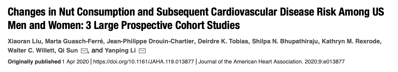 Within the plant-based community there remains some disagreement about the benefits of nuts consumption within a whole food plant-based diet. Partly because the diet shown to reverse heart disease is a very low fat diet that excludes nuts. In addition, many of the studies are either funded by the nut industry or the authors receive research funding from these companies (including two of the authors from the study highlighted). However, for me the weight of evidence supports regular, albeit small portion, nut consumption. Dr Dean Ornish, the father of lifestyle medicine and plant-based nutrition, now allows a very small portion of nuts in his lifestyle medicine programme. His website provides a very nice summary of the data supporting his change in practice, which you can read here.