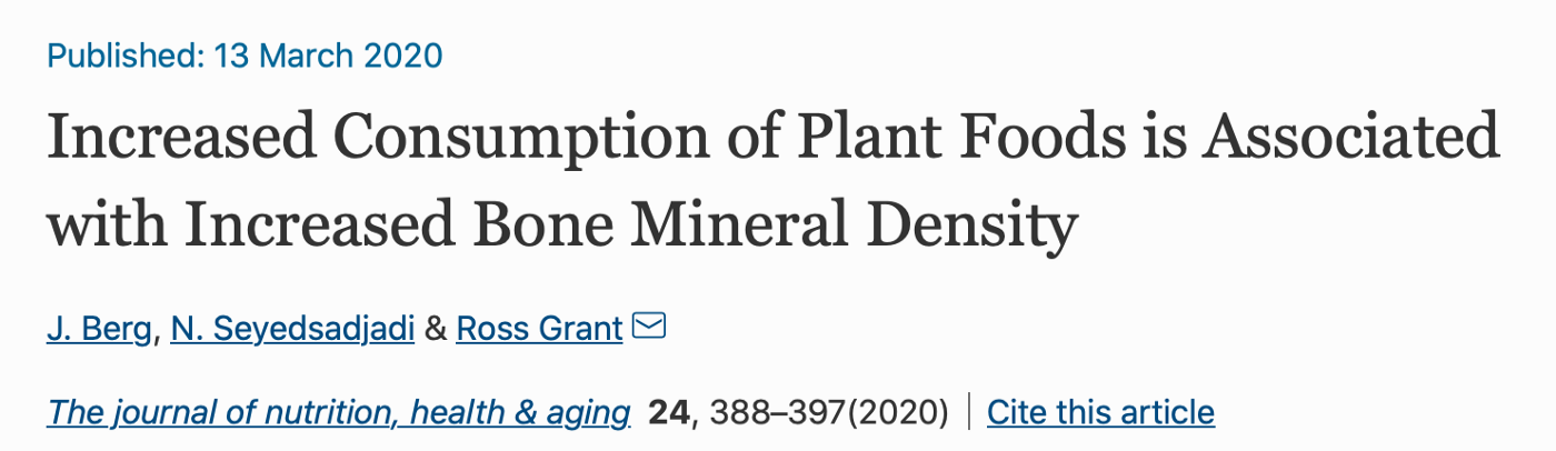 The study highlighted is small with only 73 participants and an average age of 56 years. It found that an increase in consumption of plant foods with or without meat was associated with a higher bone mineral density. This supports findings of larger, more robust studies. For example, a systematic review and meta-analysis of 13 studies showed that fruit and vegetables consumption was associated with better bone health and increasing intake by just one portion a day could reduce the risk of bone fracture.