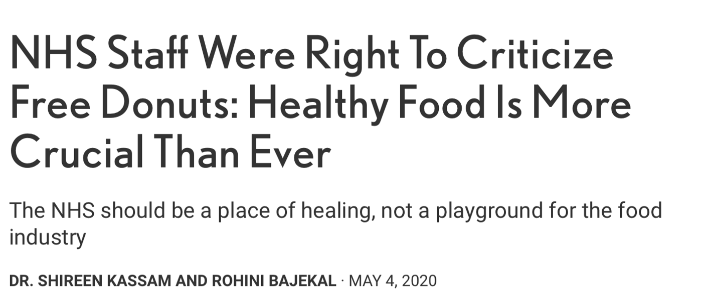 ADVERSE EFFECTS OF ULTRA-PROCESSED FOODS: We could not let the delivery of Krispy Kreme donuts to NHS hospitals go unnoticed without highlighting the complete contradiction of ‘junk food’ being encouraged in hospitals. Read our article in Plant Based News for the full story. Sadly the BMJ did not accept our article, publishing their own rather tongue and cheek version.