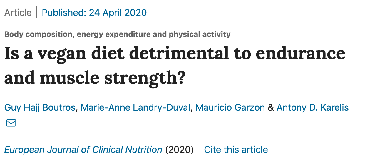 I love the papers conclusion; ‘the results of the present study indicate that a vegan diet does not seem to be detrimental to endurance and muscle strength in healthy young lean physically active females. This suggests that following a vegan diet for long term (≥2 years) may be adequately supportive to maintain muscle strength and could even be more effective for endurance performance as shown by a better submaximal endurance performance compared with omnivores. Accordingly, these findings contradict the popular belief of the general population’