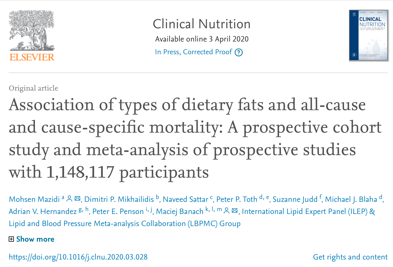 Authors conclusions ‘For now, however, based on these data, and the results of prior trials, it seems sensible to focus on the quality of dietary fats with a reduction in SFA intake and increase PUFA and MUFA intake to lower future CVD outcomes and mortality’.