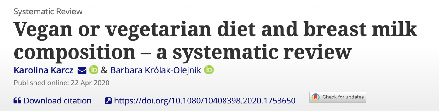 BREAST MILK FROM VEGETARIAN AND VEGAN DIETS IS NUTRITIONALLY ADEQUATE: There is ongoing concern about the adequacy of a plant-based diet, particularly a vegan diet, for all stages of human life. This is despite the fact that major dietetic organisations around the world have confirmed well-planned vegan diets to be nutritional adequate. So it is good to see a paper that confirms vegetarian and vegan diets are adequate for breastfeeding mothers.